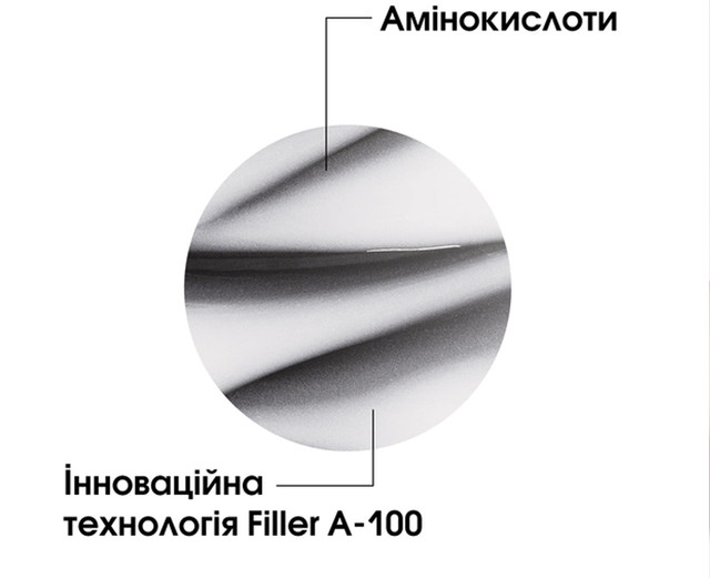 Термозахисний крем для відновлення щільності поверхні волосся по довжині збагачений філером А-100 та амінокислотою, тому працює в декількох напрямках: захищає від шкідливого впливу високих температур стайлінгових інструментів, відновлює гладкість та поверхні волосся по довжині, заповнює кінчики, зменшує їх посіченість.
